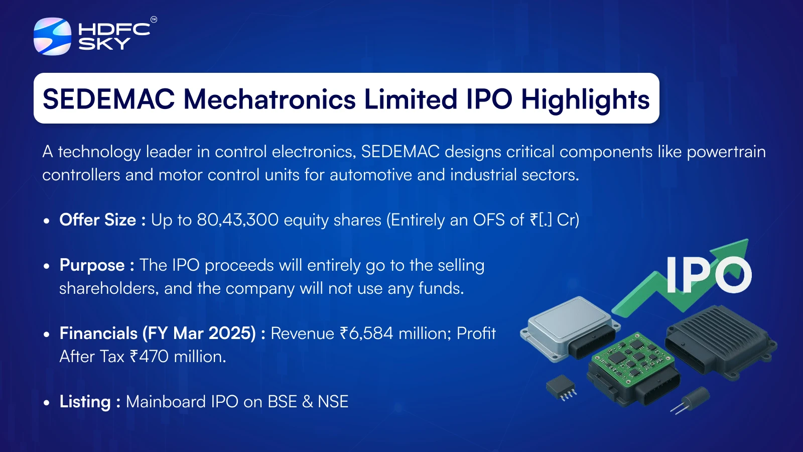 SEDEMAC Mechatronics Limited is a technology-driven company that designs, develops, and manufactures sophisticated control electronics and mechatronic systems. Its solutions are critical to the operation of equipment in the mobility and industrial sectors.