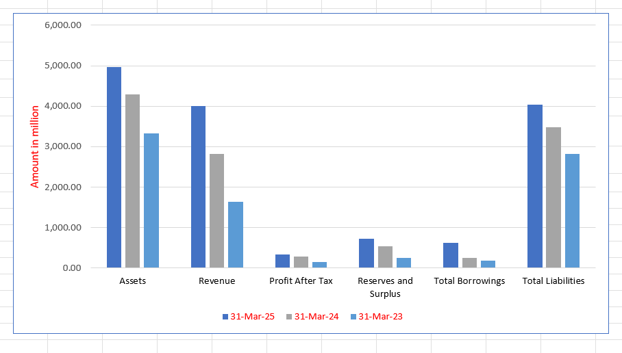 SRIT India Limited has demonstrated consistent and strong financial growth. Its revenue from operations increased at a CAGR of 36.87% from Fiscal 2023 to Fiscal 2025, while PAT grew at a CAGR of 30.73%. With a healthy balance sheet, a PAT margin of 8.63% in Fiscal 2025, and a strong Return on Net Worth of 38.76%, the company is financially robust and well-positioned for future growth.