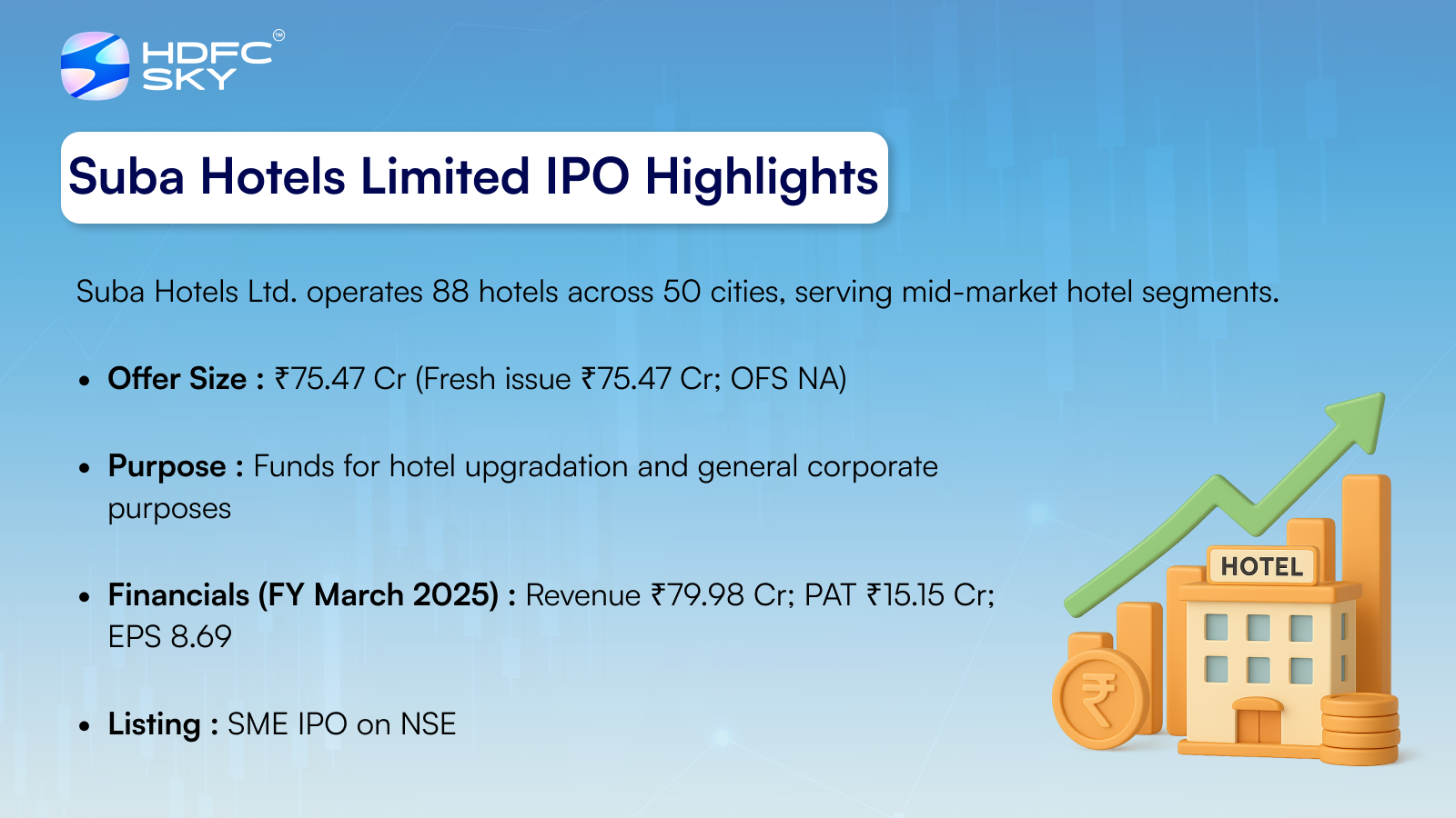 Suba Hotels IPO is expected to list on NSE SME on 7 October 2025.